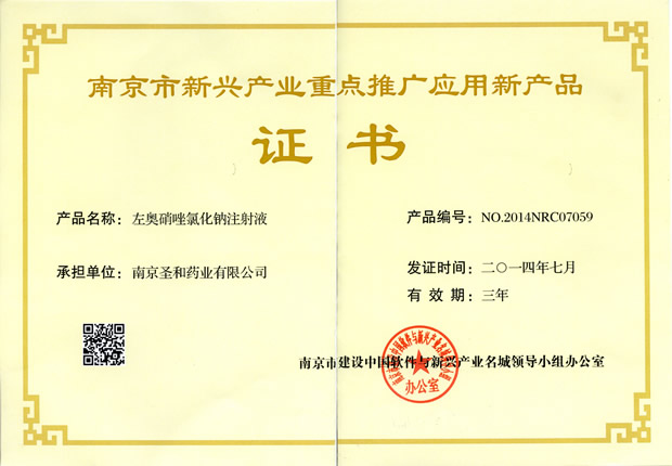 2014南京市新興產業(yè)重點推廣應用新產品證書