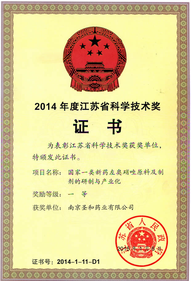 2014年度江蘇省科學(xué)技術(shù)一等獎