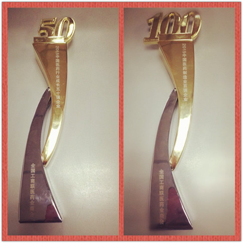 2015年度中國醫藥行業成長50強、百強企業(獎杯)