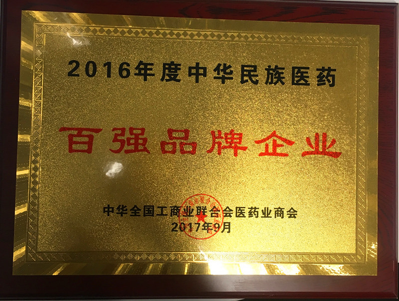 2016年度中華民族醫(yī)藥百強品牌企業(yè)