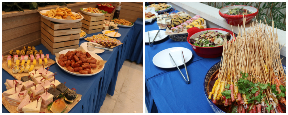 冷餐區(qū)內(nèi),同事們有序取餐、笑語(yǔ)歡談,在一片溫馨中共享圣和成長(zhǎng)的喜悅。